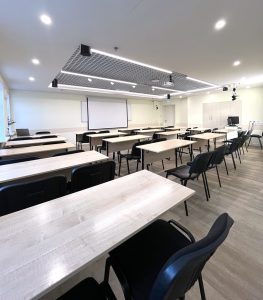 - Возможна разная расстановка мебели в зависимости от формата мероприятия: от классических парт до свободного пространства с мягким напольным покрытием.